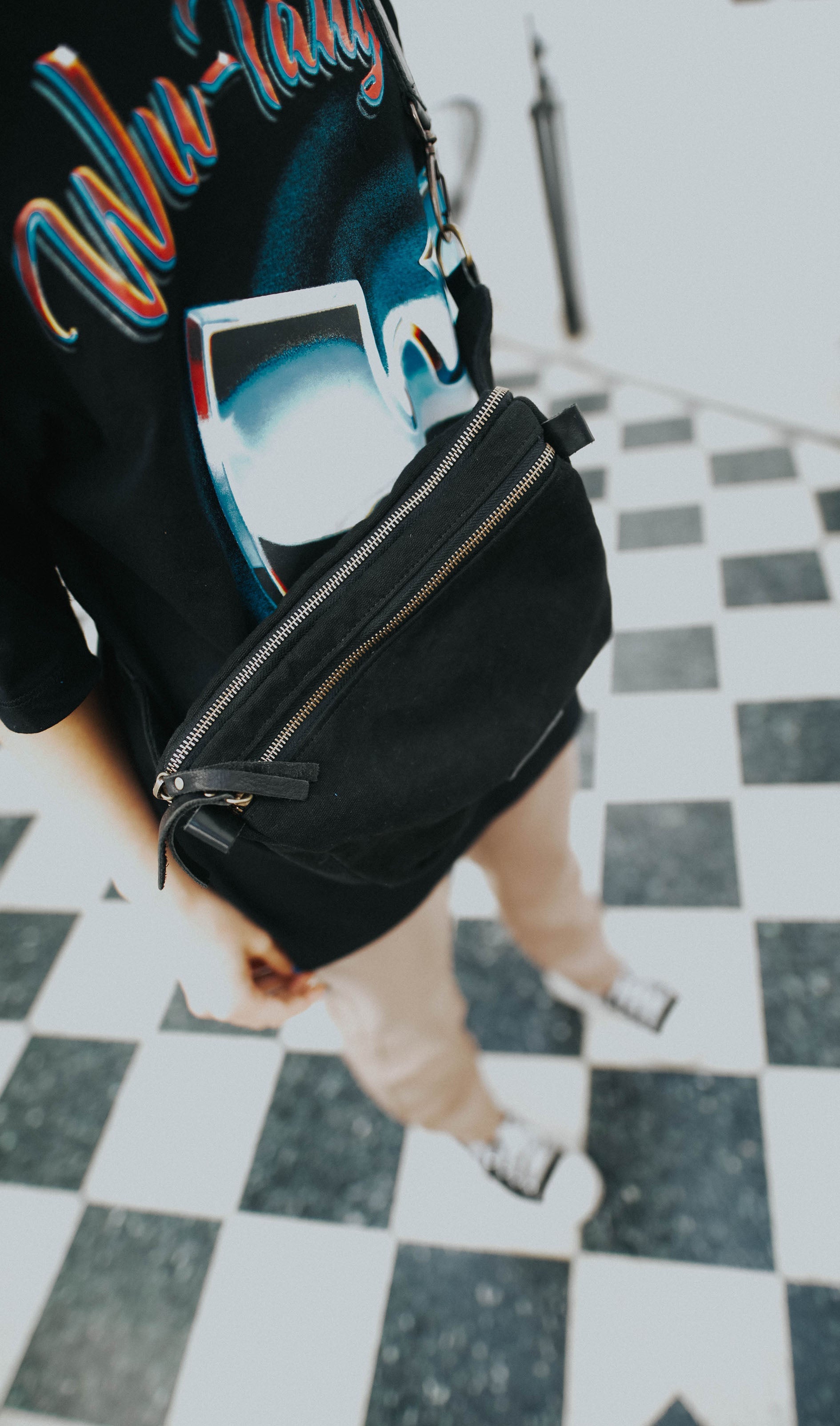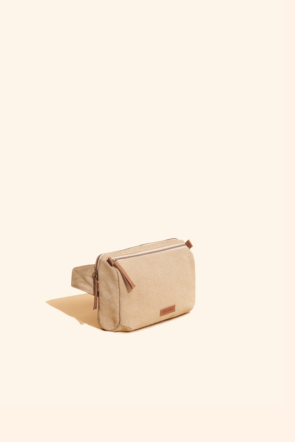The Alaska Fanny Pack is the midpoint between a classic fanny pack and a messenger or crossbody bag. It is designed to carry your basics and more, such as a book, a small tablet or a bottle of water.